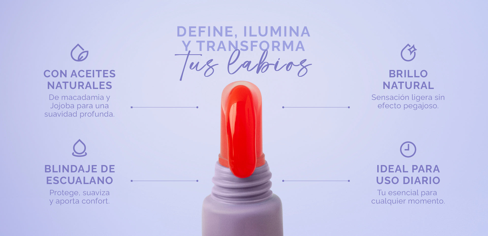 Lip gloss hidratante con brillo natural, que nutre y suaviza tus labios con un toque de color. Se siente ligero, cómodo y perfecto para llevarlo todo el día.